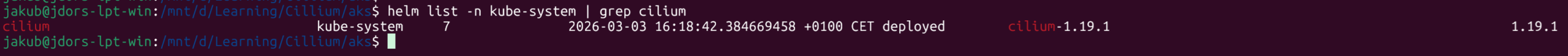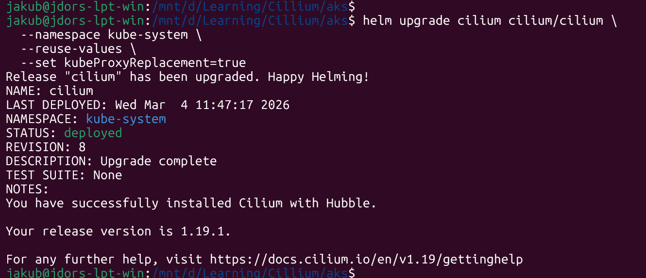 Now, it’s time to show how to fully replace kube-proxy. I’ll use my AKS cluster with Cilium (deployed with Helm).