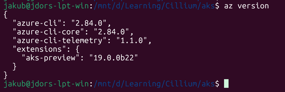 The --kube-proxy-config flag we’ll use is preview-only. We have to install the aks-preview extension: